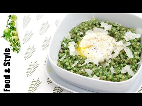 Music Discovery, Charts and Song Lyrics : Fregola With Kale Pesto & Poached Eggs | Toasted Fregola
